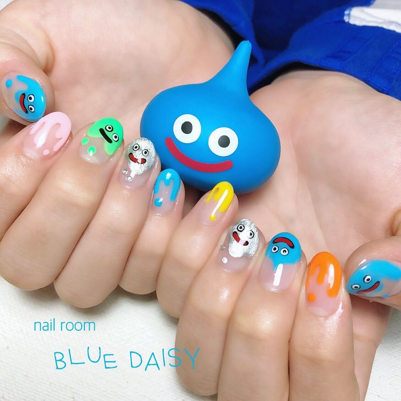 オールシーズン ハンド 変形フレンチ キャラクター 水滴 Blue Daisyのネイルデザイン No ネイルブック